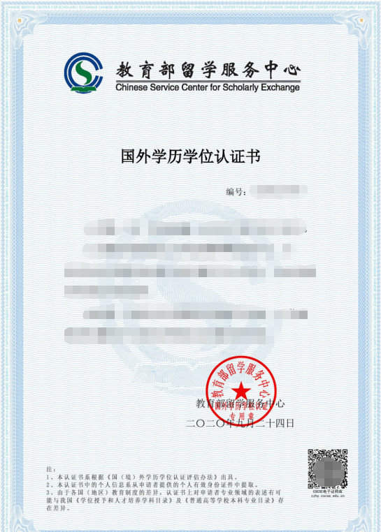 于国(境)外获得本科毕业证书或学士学位证书的往届毕业生 | 教育部留学服务中心出具的认证报告扫描件 |