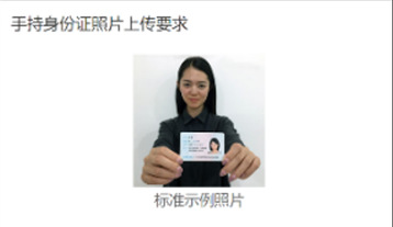 2.拍摄时,手持本人身份证,将持证的手臂和上半身整个拍进照片。姿态端正,双眼自然睁开并平视,耳朵对称,嘴唇自然闭合,左右肩膀平衡,头部和肩部要端正。